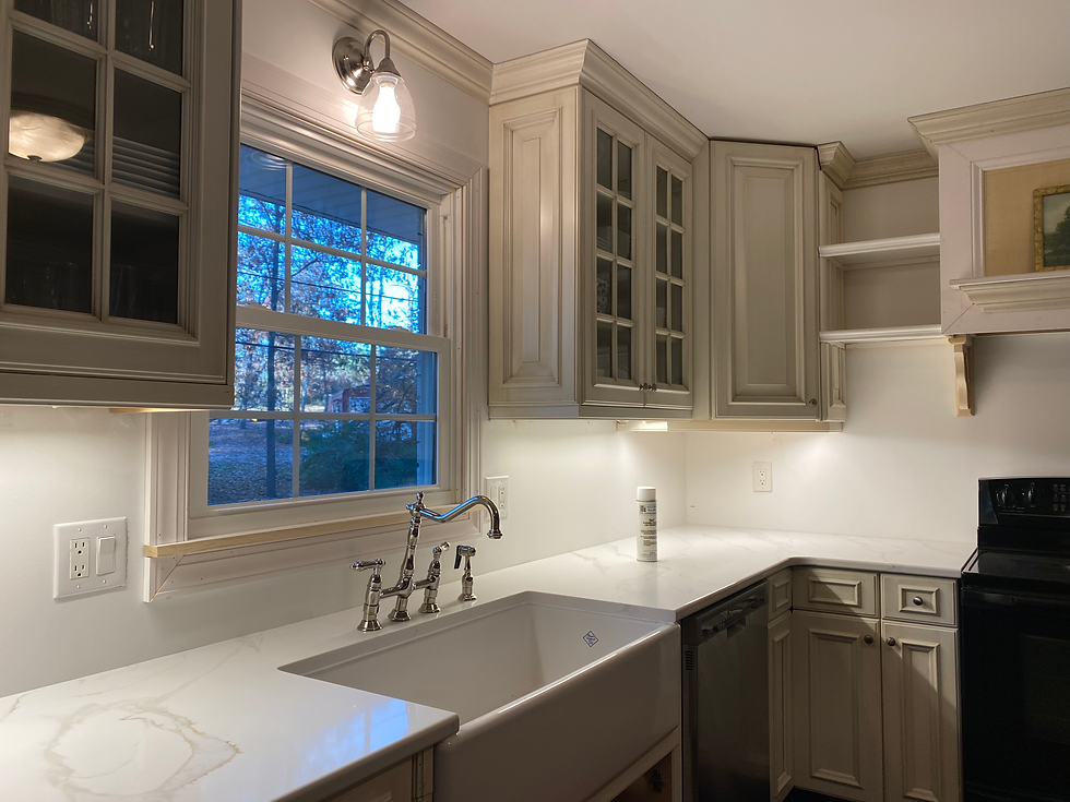This quartz, I think it's called Calacutta Gold Quartz. It's got the white, gray, and bit of gold in there. When I saw it, I fell in love! It's so beautiful cool, yet warm at the same time. There's not a ton of gold. The vein above is the biggest and one of the few gold veins in the entire slab and I love it. We worked with All Granite out of Denver, NC. (If you're local, go check them out if you're needing countertops!) Joshua does a lot of business with them and gave us a huge discount on this slab. It had a pretty hefty price tag but they're really good to Joshua and gave it to us for 1/2 the price per sq ft! Blessings upon blessings!